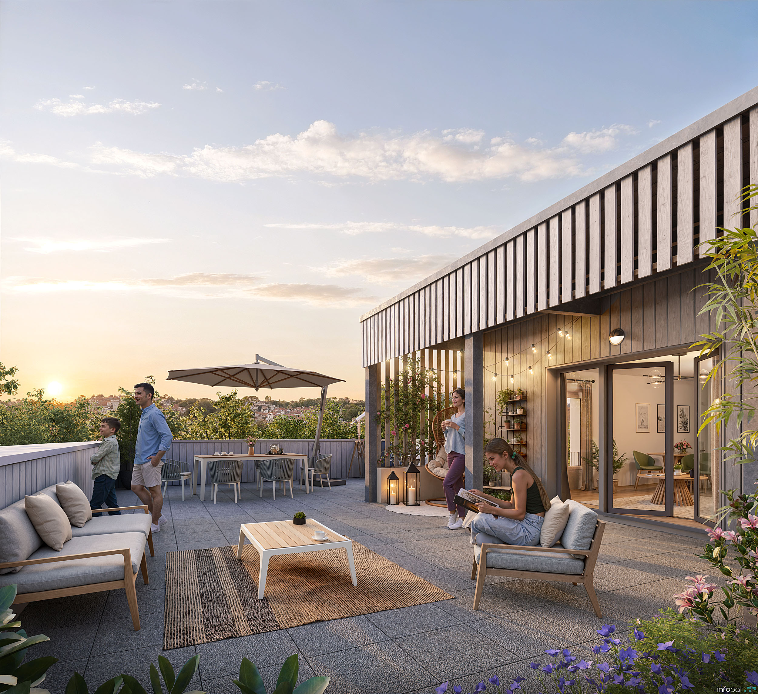 - Espaces extérieurs généreux (terrasses, balcons…) permettant de manger dehors et de profiter du cadre naturel